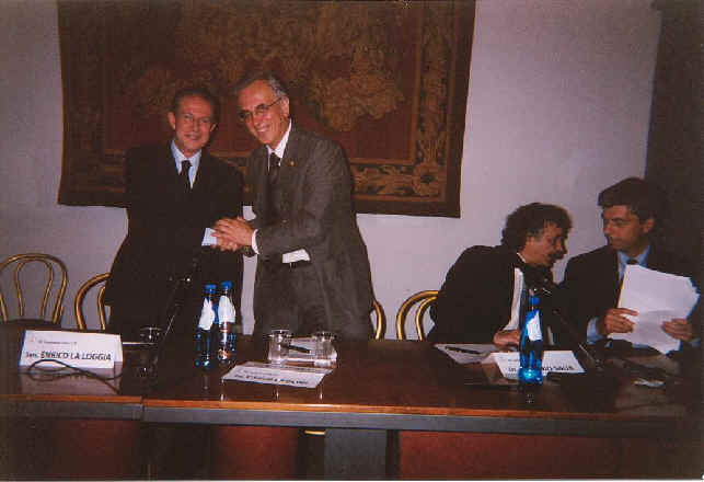 I Colleghi Carlo Paolini e Nino Saija con il Ministro Enrico La Loggia e il Presidente dell’ANCI Leonardo Domenici |